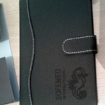 Note Book Sotumed Des Note Book personnalisé en guise de cadeaux pour ses partenaires ont été mis en place par notre agence au profit de notre nouveau client . L’agenda avait une couverture en Balcon noir, avec personnalisation gravure laser sur la couverture projet effectué en Février 2015