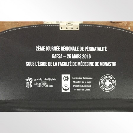 Nous avons mis en place pour notre client Médecin du Monde, des cartables réf Cart-2 pour une conférence qui se tiens à Gafsa. Notre équipe graphique à mis en charge la conception et la préparation des logos en version vectorielle et les cartables ont été personnalisées par sérigraphie en une couleur argent.