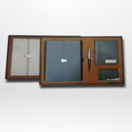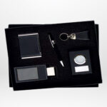 Coffret miroir de poche + stylo en métal + porte clé et porte cartes de visites.