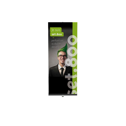 - Roll-up avec visuel intégré, qui reste protégé pendant le transport.